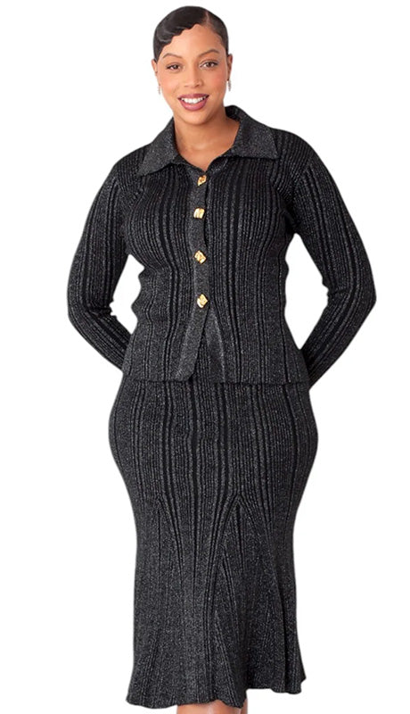 • 2pc Luxurious Knit Suit With A Subtle But Attention Grabbing Metallic Sheen With A Collared Jacket With Tailored Lapels