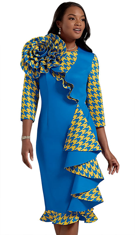 • 1pc Bold Dress Showcasing Vibrant Houndstooth Contrasting Pattern That Allows A Flourish Of Depth Throughout The Items Intricate Details From The Floral Shoulder Adornment Down To The Trim
