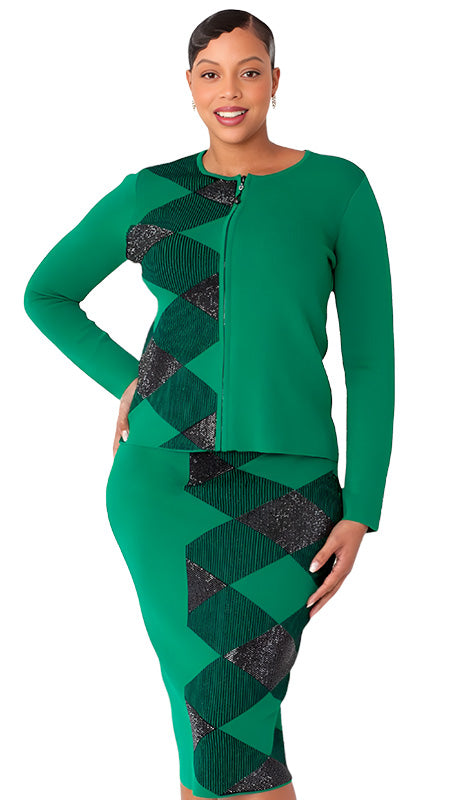 • 2pc Striking Geometric Knit Featuring A Form-Fitting Long Sleeve Top And Midi Skirt