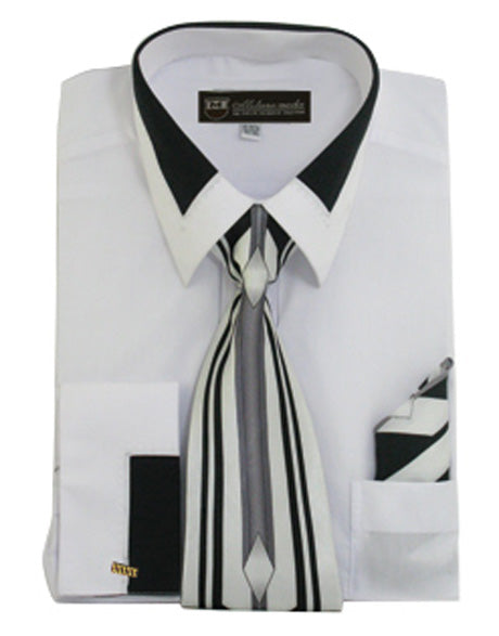 White ( Matching Tie and Hanky Included, French Cuff, Contrast Collar, Mens Dress Shirt )